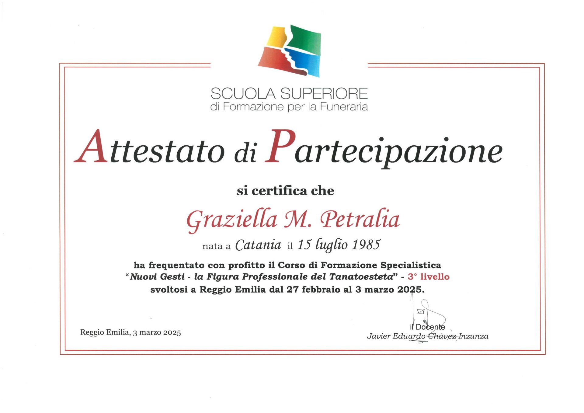 Specializzata in tanatoprassi, mi occupo di preparare e preservare i corpi con tecniche avanzate, garantendo rispetto e dignità. La mia formazione è supportata da certificazioni riconosciute nel settore, e l'attenzione che metto nei dettagli fa sì che ogni intervento sia eseguito con la massima professionalità.